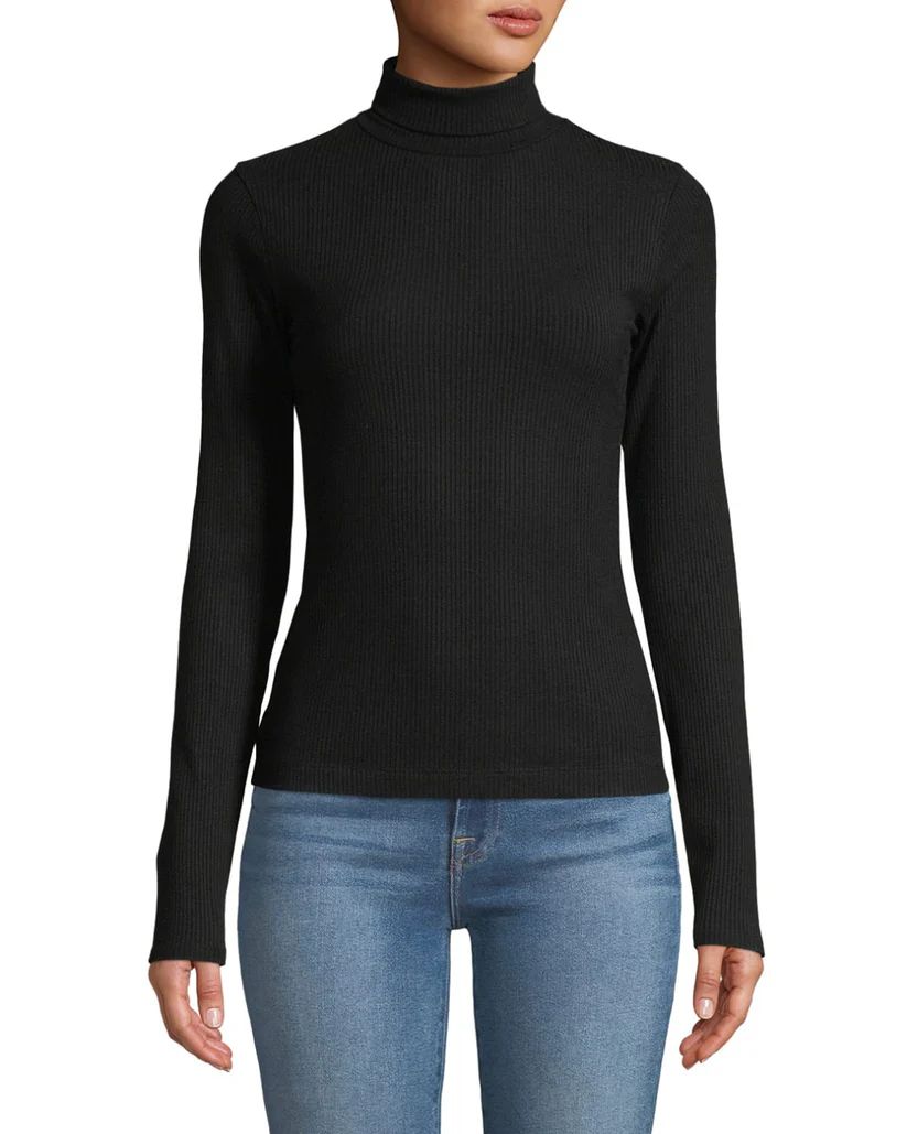 This turtleneck from 7 For All Mankind is in a classic ribbed knit. This minimalistic top can be worn alone or layered for cooler weather. This top pairs well with your favorite denim and is a timeless addition to any closet!