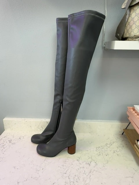 8 by yoox 7.5 Grey NWOB Thigh High Round heel