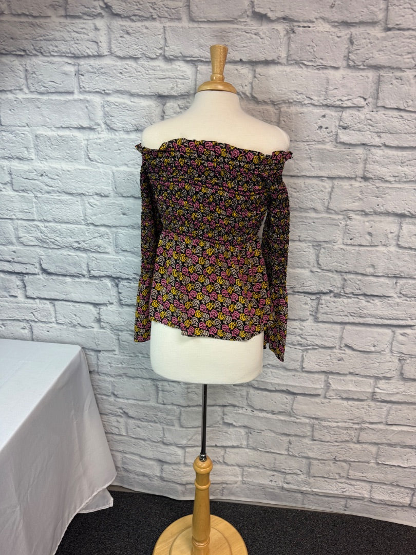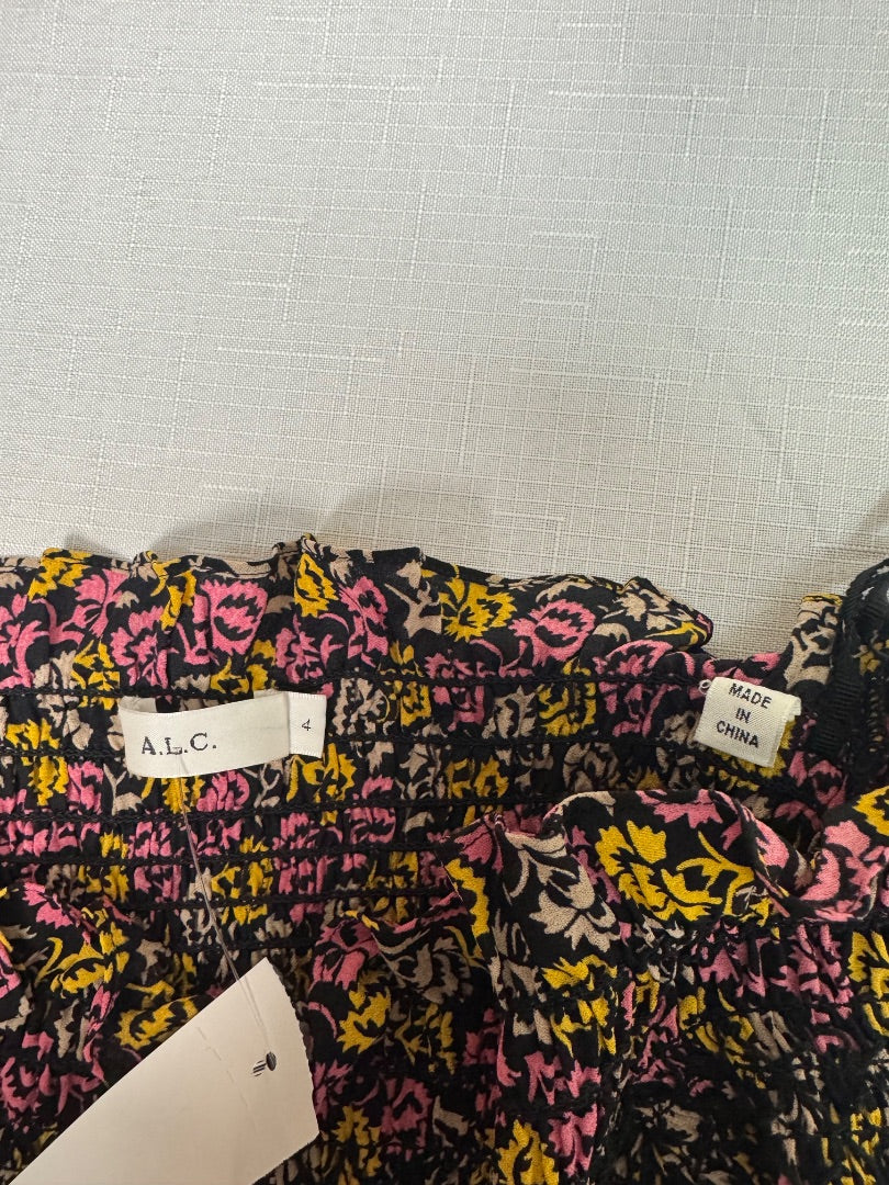 A.L.C. S Black/Pink Floral off shoulder bell sleeve