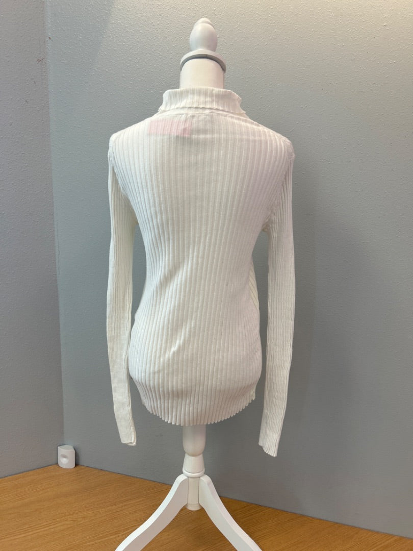 This Anine Bing size large ribbed mock neck top in cream delivers Scandinavian minimalism with exceptional everyday versatility. The refined ribbed knit fabric provides subtle texture and visual interest while maintaining a sleek, structured silhouette that flatters across various body types. The mock neck design offers gentle warmth and elegant neckline definition without the bulk of a full tu... read more