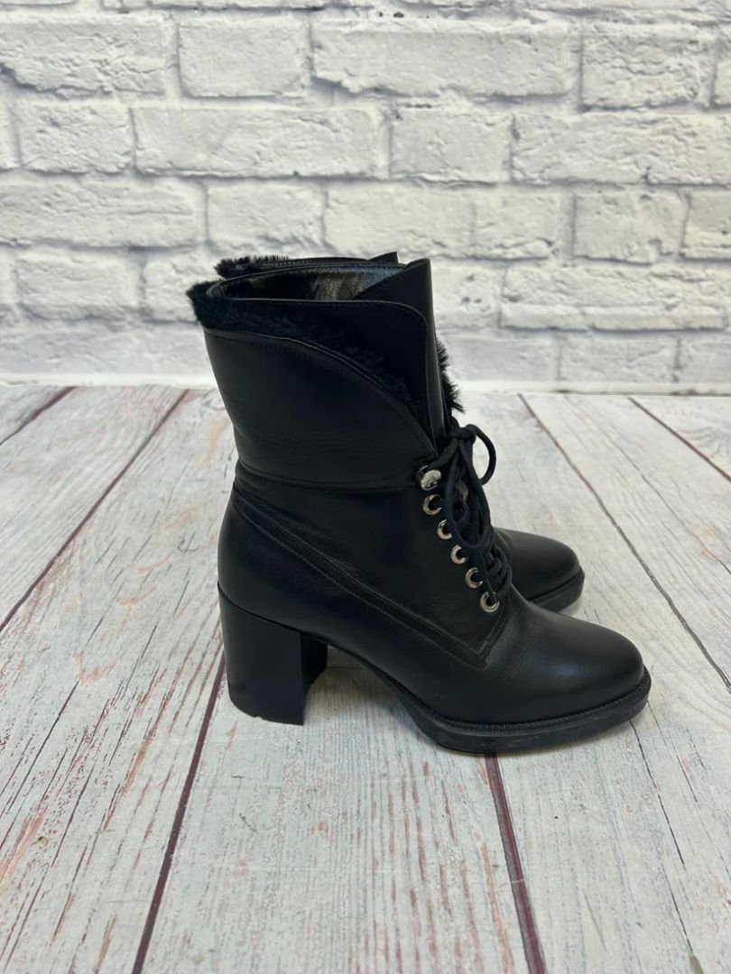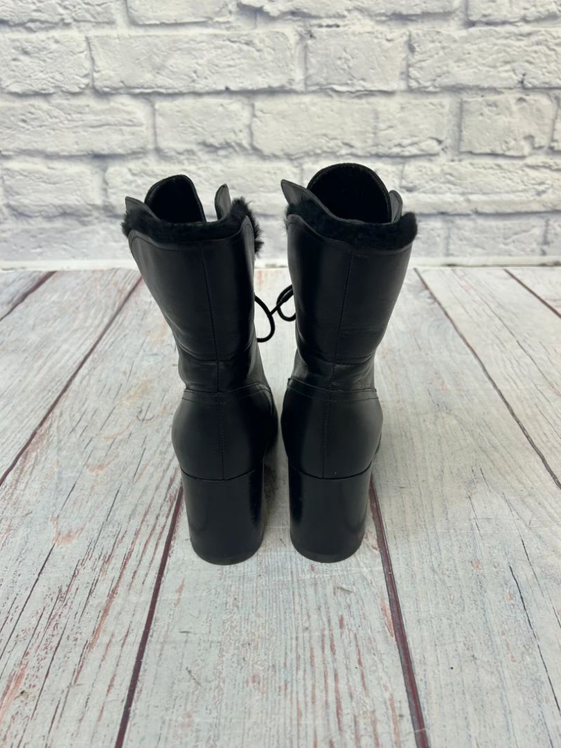 The "Black Leather Fur Lined Boots" from Aquatalia feature lace up closures, a fur lined interior, and a classic leather exterior. Perfect for any winter outing, these boots are the ideal addition to any wardrobe! Pair with a simple jean or skirt for the perfect winter outfit!