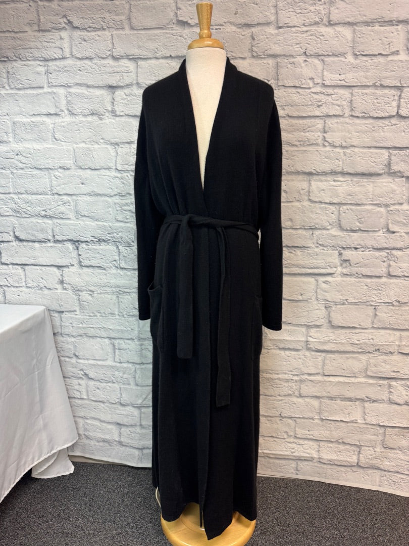 Black Long Sleeve Long Cashmere Cardigan Elevate your wardrobe with this designer floor-length cardigan crafted from 100% pure cashmere. The Arlotta in black offers timeless sophistication with luxurious drape and exceptional softness. Perfect for layering over evening wear or wearing as a statement piece, this long-sleeve cardigan delivers refined elegance and enduring comfort. A versatile inv... read more