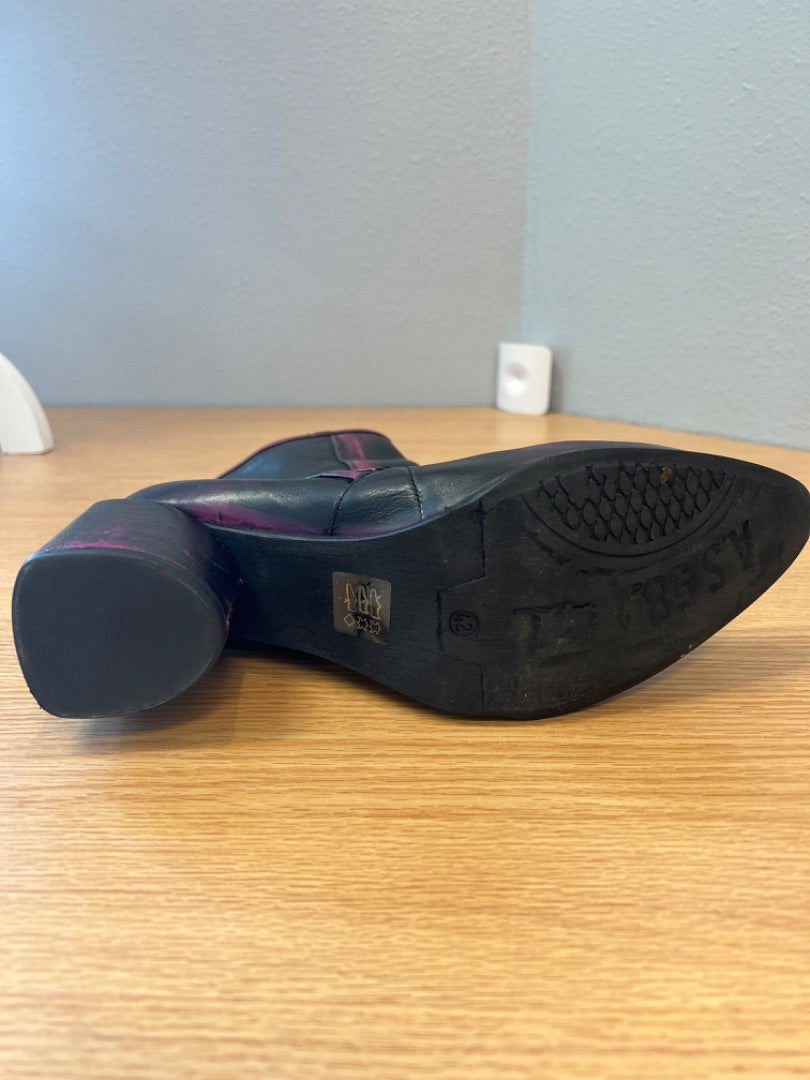 A.S. 98 12 Black /pink distressed leather pointed toe heeled bootie