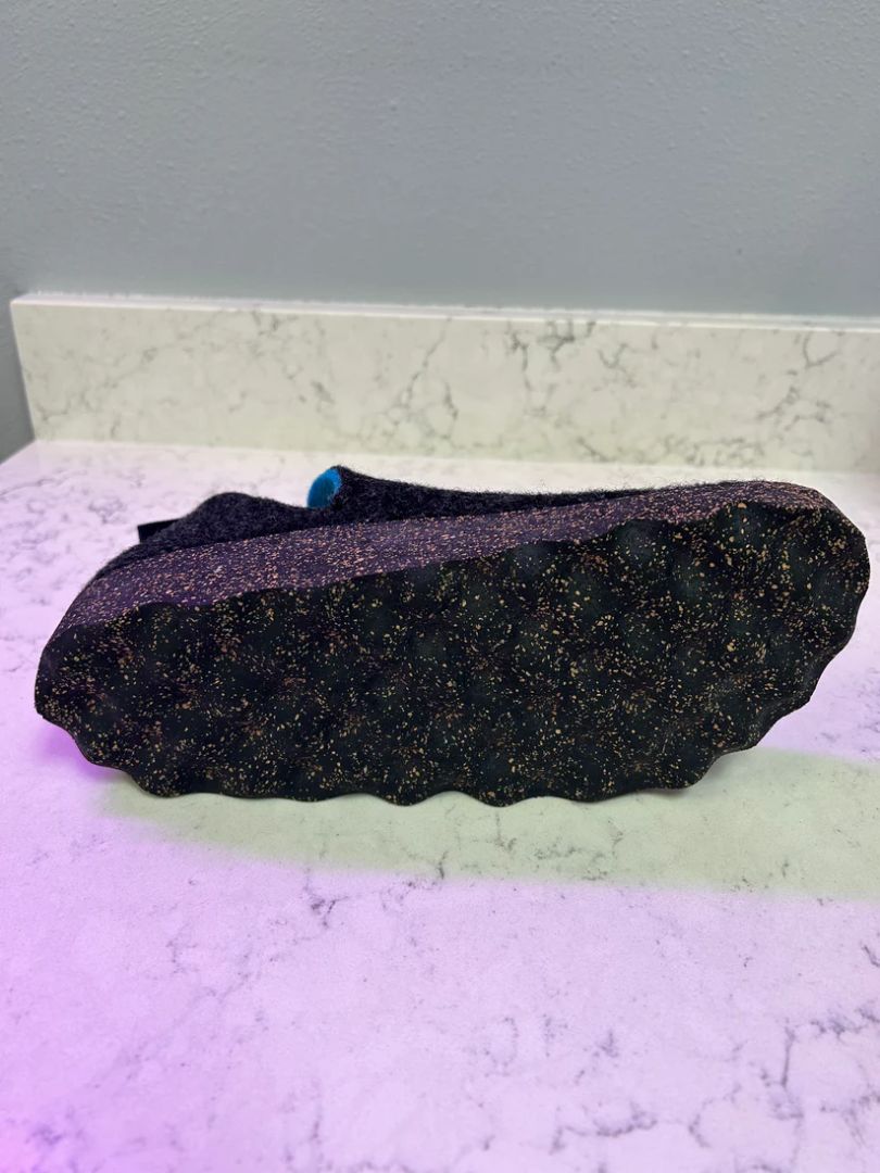 Fabric: Wool upper and lining, natural cork and latex sole.