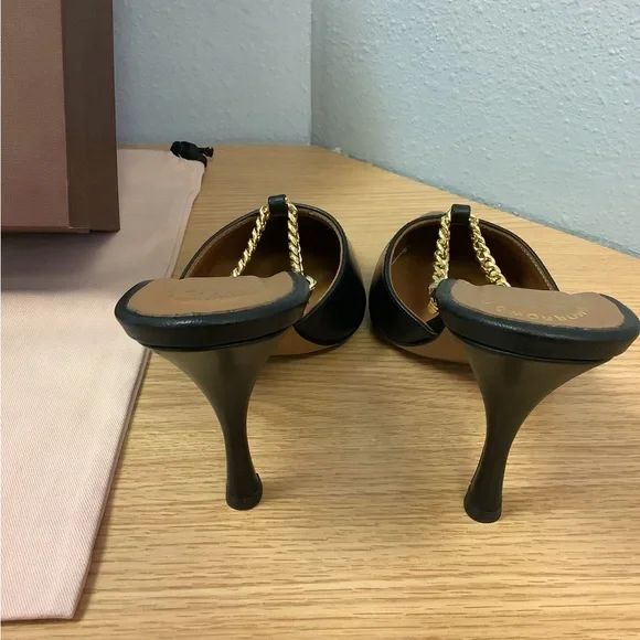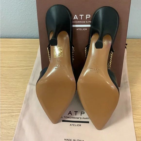 New with tags, the "Macreata Chain" pumps by Atelier showcase a stiletto heel and pointed toe for a timeless look. These heels feature curb chain accents and a chic leather footbed for the perfect accessory to any look!