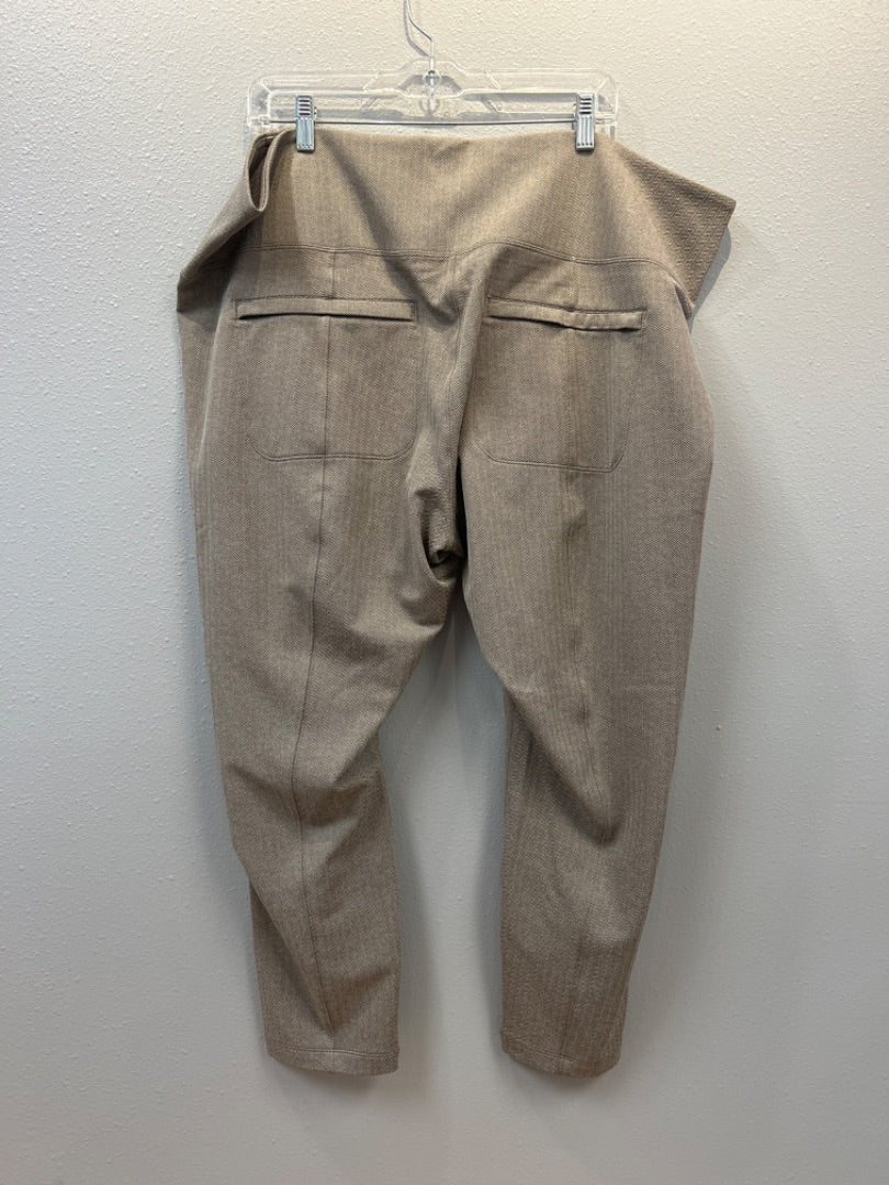 Versatile full legging by Athleta in tan with an allover pattern that adds visual interest while maintaining a neutral aesthetic. The slip-on design offers effortless dressing, while the 7/8 cropped length provides a modern silhouette that works beautifully with sneakers, slides, or layered styling. Crafted from quality fabric with excellent stretch and recovery, these leggings move with you through workouts, errands, and casual activities without losing shape. The patterned design elevates these beyond basic basics, offering enough visual appeal to wear solo or layer under oversized tops and tunics. In good condition, this piece represents reliable, well-constructed activewear that bridges performance and everyday comfort. The inclusive sizing ensures a flattering fit for various body types. A practical addition to any wardrobe seeking versatile, patterned basics. Available in size 3X.
