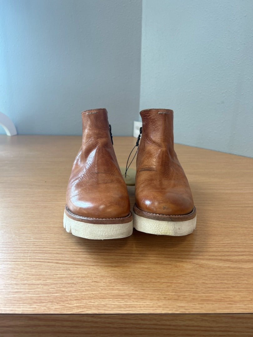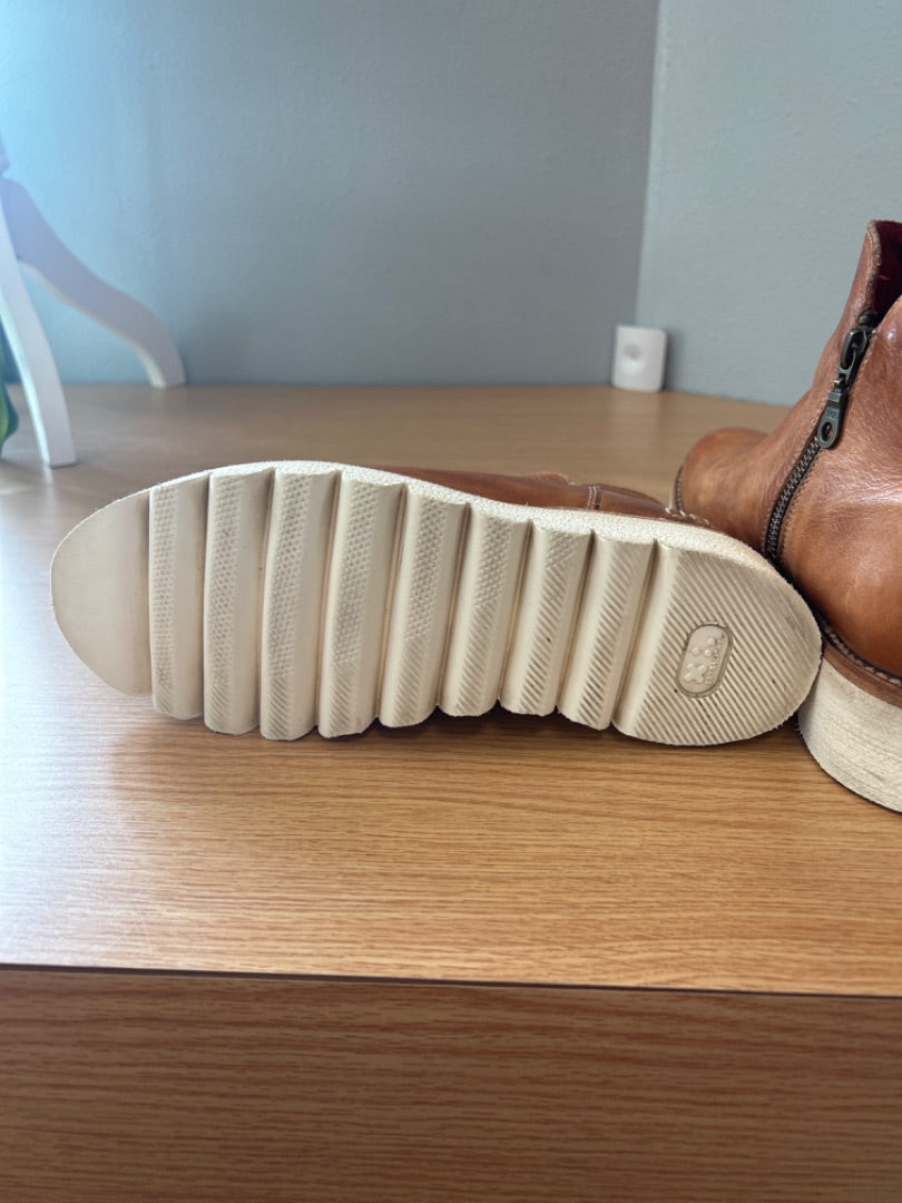 Bed|Stu 9 Brown leather platform like zip ankle