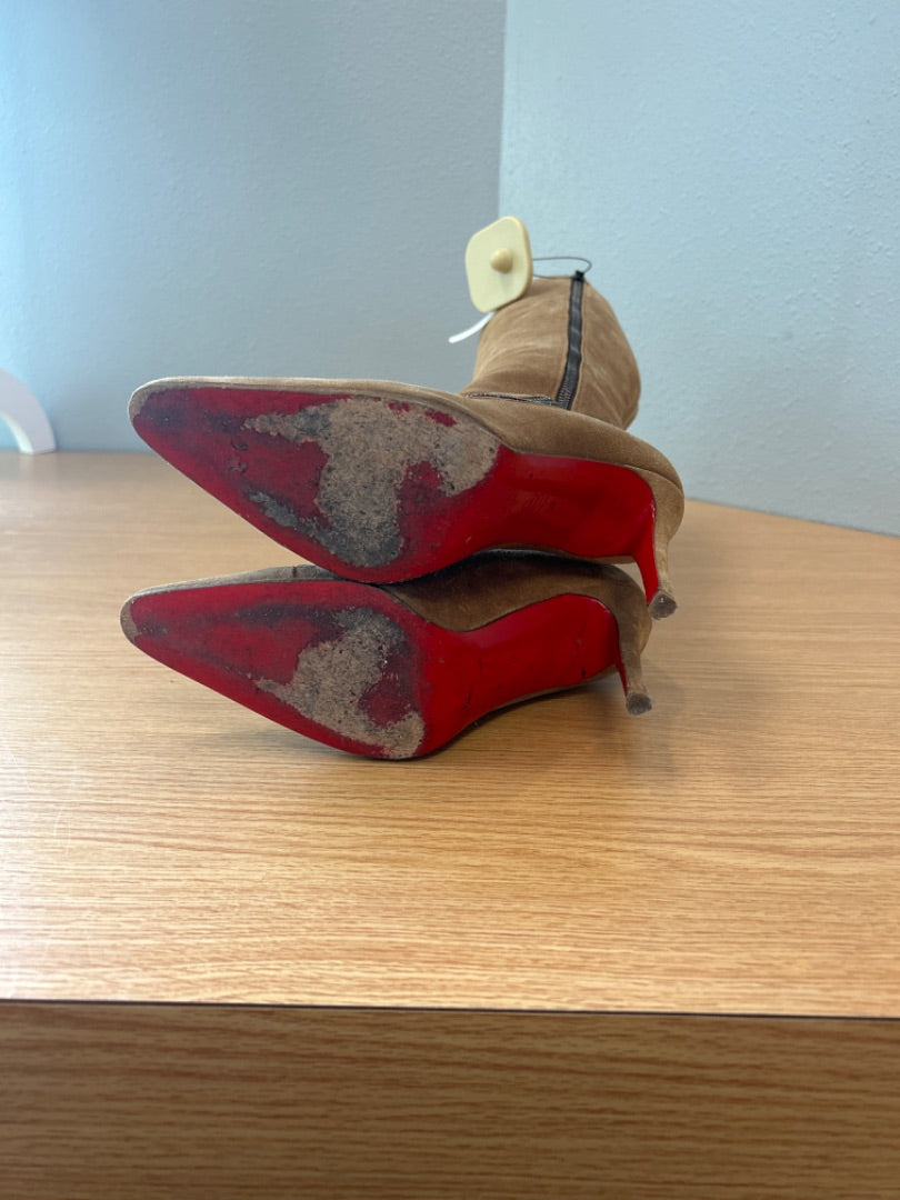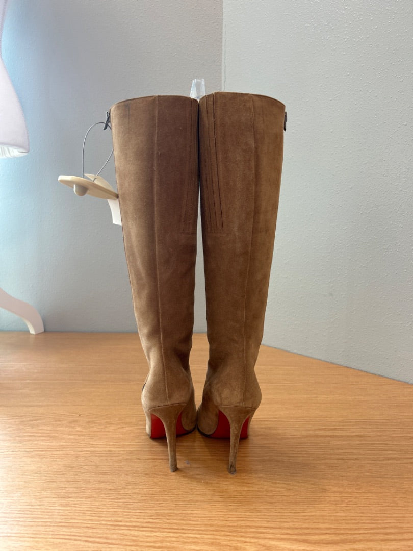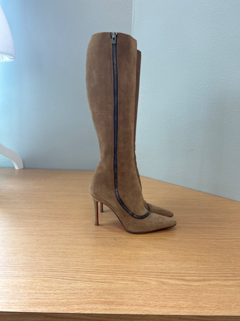 Christian Louboutin 7 Tan Suede Knee High Zipper detail