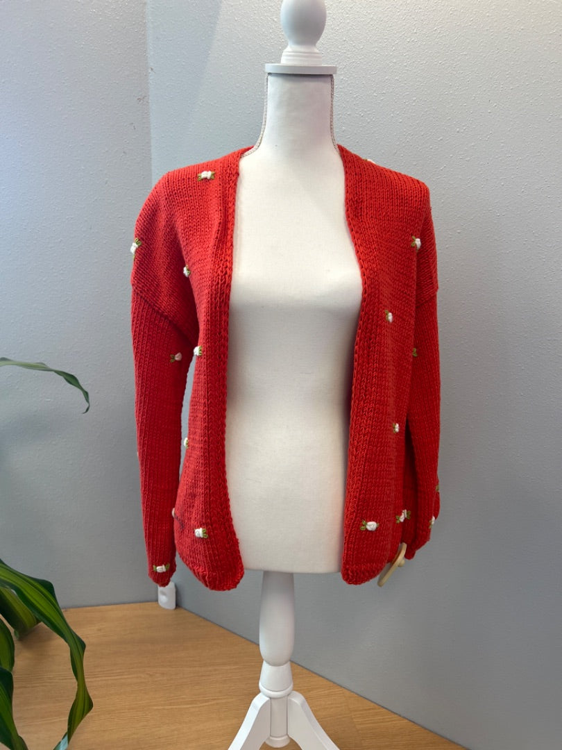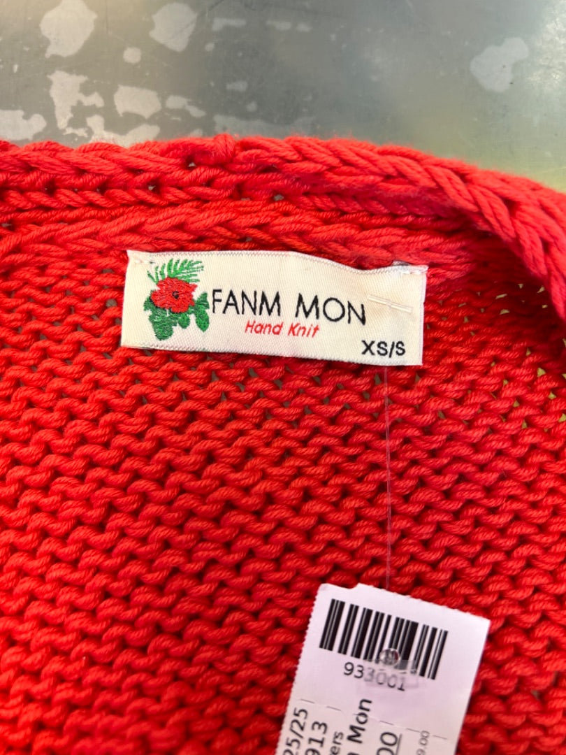 Fanm Mon XS/S Red Hand knit open frnt w/flowers