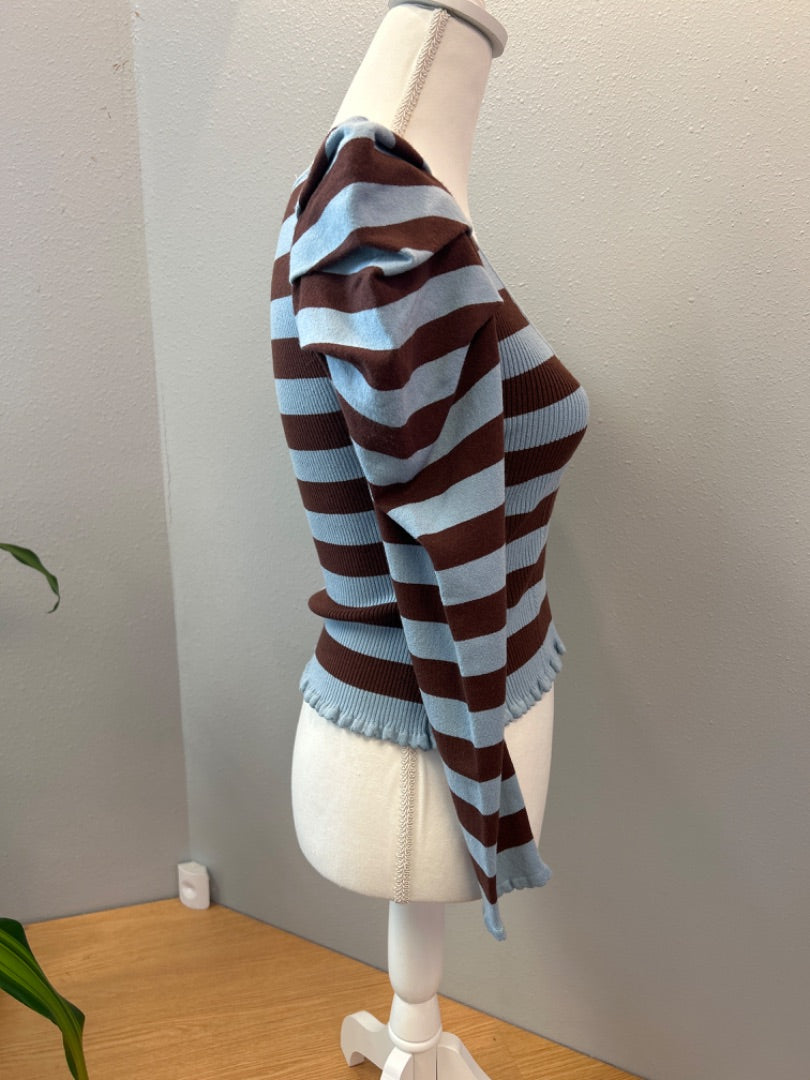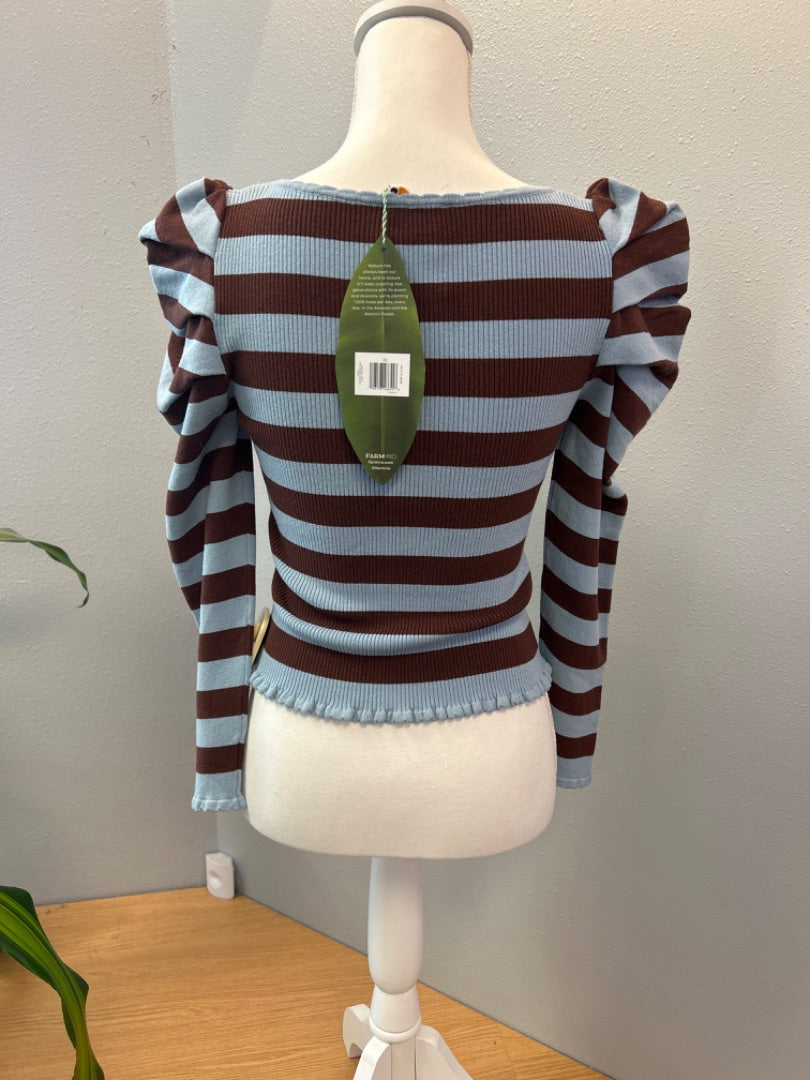 Farm Rio XS Blue/brown NWT Stripe LS U-Neck Cropped