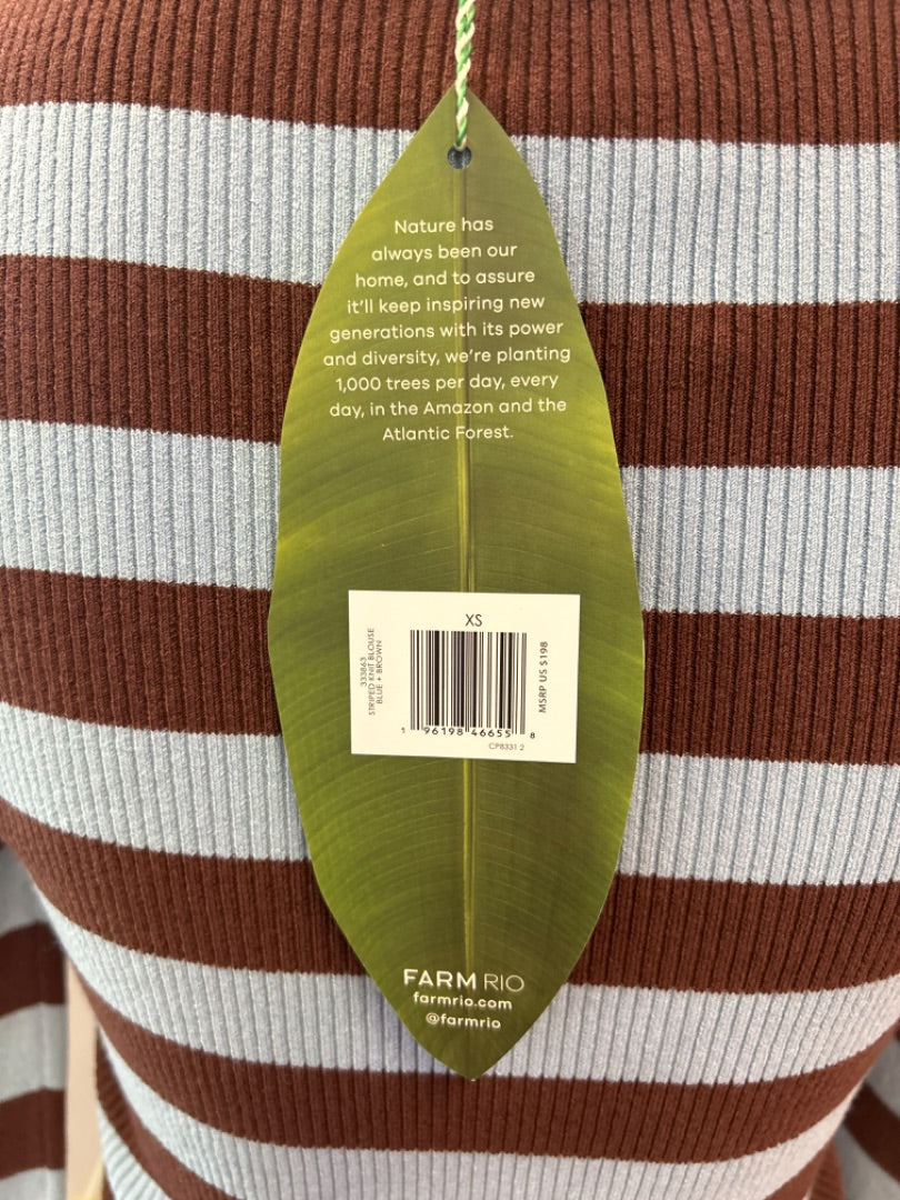 Farm Rio's striped cropped top in blue and brown arrives new with tags, ready to inject playful sophistication into your wardrobe. The ribbed stripe pattern creates visual movement and texture, while the blue and brown colorway offers an unexpected yet harmonious combination that coordinates beautifully with neutral basics and complementary earth tones. Constructed from polyester, this piece of... read more