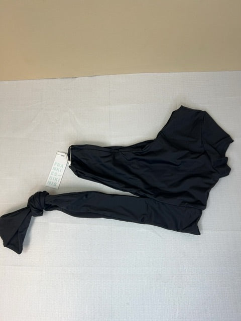 Elevate your swimwear collection with this striking one-shoulder Frankies Bikinis top in classic black. The tie waist detail creates a flattering, adjustable fit while the asymmetrical neckline delivers modern edge and sophistication. Perfect for those seeking an alternative bikini style that balances comfort with contemporary design. New with tags, this XS piece is ready to make a statement at the beach or pool.