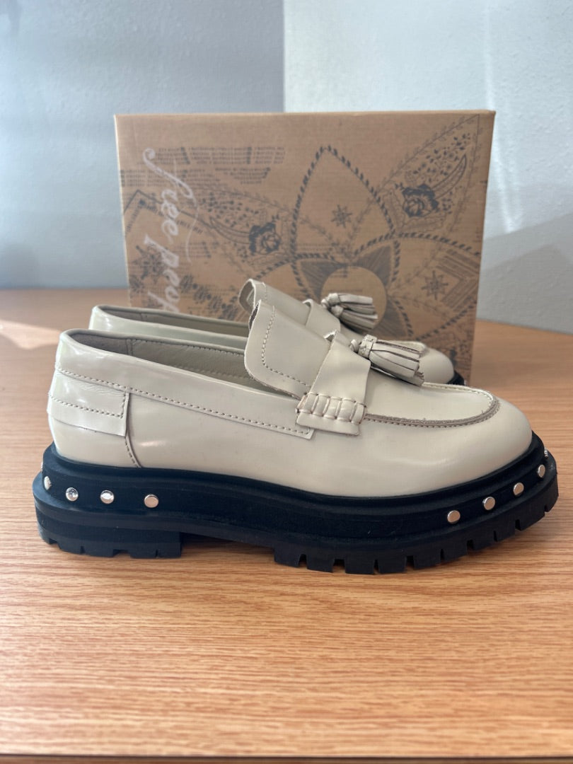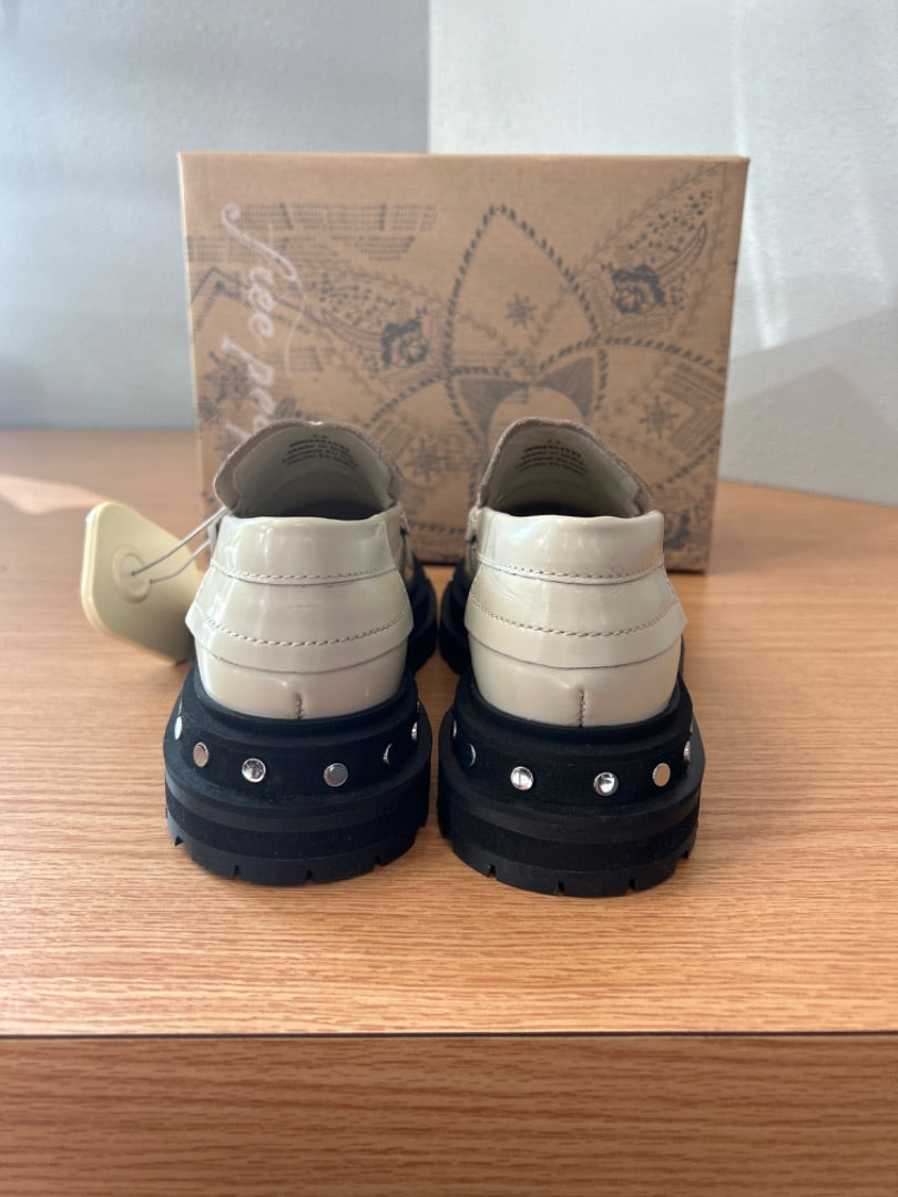 Free People 7.5 White Leather loafer w/ silver studs NWT/box