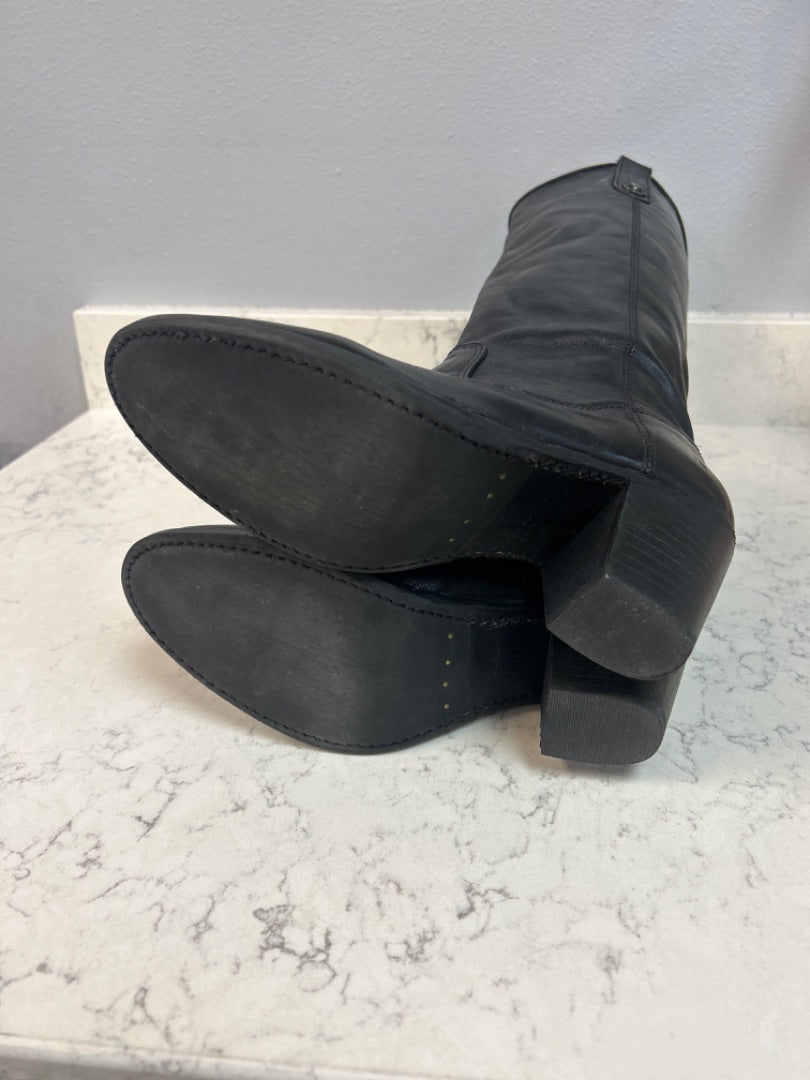 These Frye women's boots in size 8 deliver sophisticated fall styling with their premium leather construction and thoughtfully designed rounded toe that prioritizes both comfort and elegance. The rounded silhouette softens the boot's profile while maintaining structural integrity, making these boots suitable for extended wear throughout the season. The rich leather develops character and depth ... read more