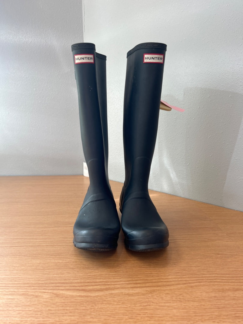Step into reliable weather protection with these Hunter rubber rain boots in navy. Featuring the iconic Hunter logo on the front and a practical side buckle for secure fastening, these tall boots deliver both function and timeless style. Crafted from durable rubber, they're built to withstand wet conditions while maintaining their shape season after season. A wardrobe essential for anyone serio... read more