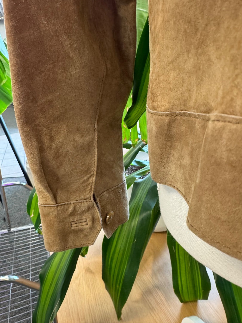 Isaac Mizrahi M Tan genuine leather button up blazer