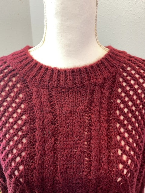Elevate your layering game with this John + Jenn cable knit tunic in rich red. The loose, relaxed silhouette drapes beautifully over fitted pieces, while the fuzzy texture adds tactile warmth and dimension. Open knit detailing on the front creates visual interest and breathability, making it perfect for transitional seasons. Still new with tags, this piece is ready to become a versatile staple ... read more