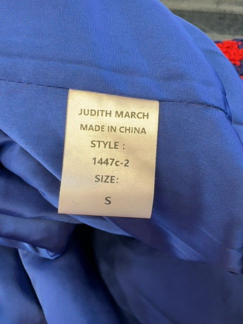 Judith March S Red /purple houndstooth jacket w/ belt/tassel buttons