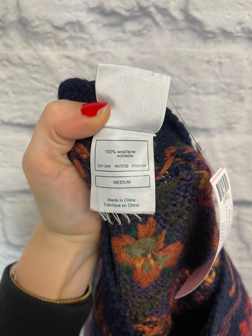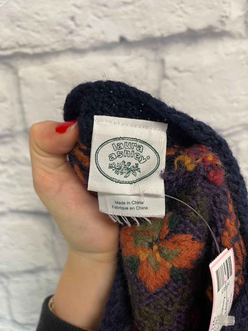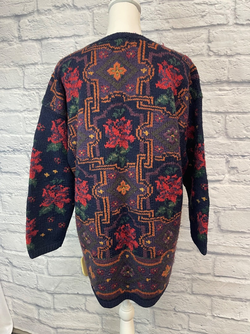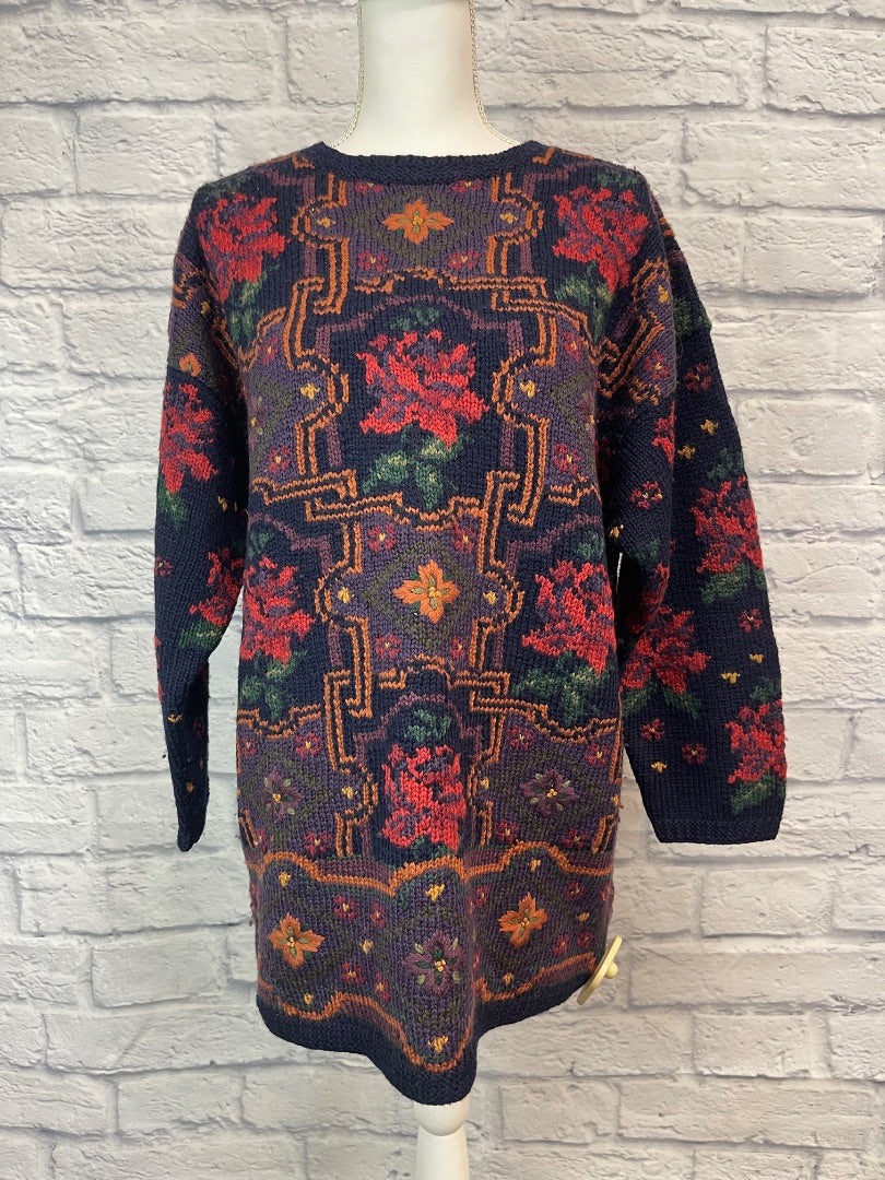 Laura Ashley M Blue 100% WOOL floral patterned LONG sweater