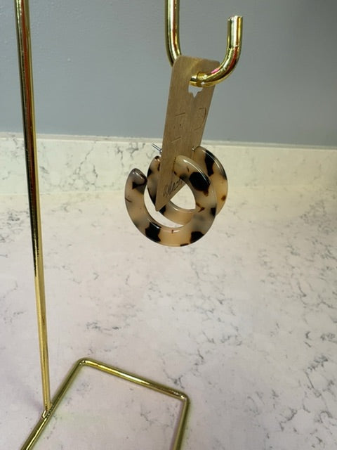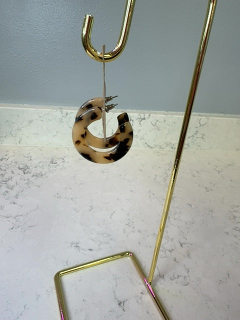 Machete Tortoise Shades of Brown Lucite, Open Hoop Earring Tortoise