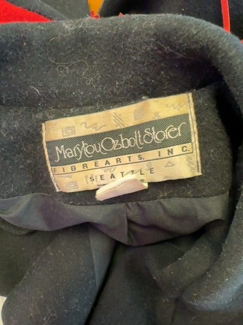 Mary Lou Ozbolt Storer S Black /red 100% wool jacket w/ fringe/embroidery