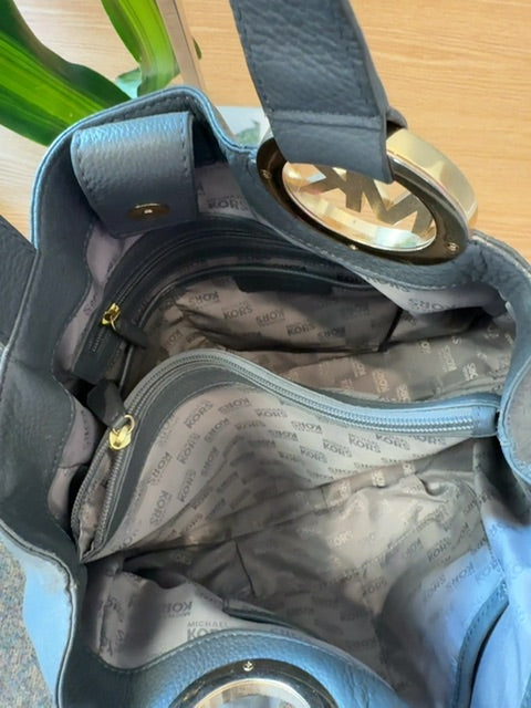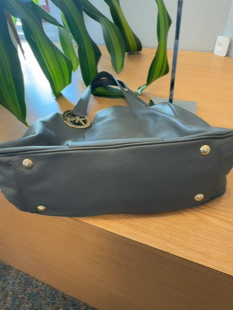 Micheal Kors Gray Pebble leather 2handle w/ gold MK on strap AS IS
