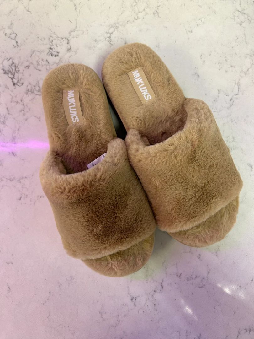 Versatility meets cozy convenience with the Muk Luk "Platform Slide Slipper". These slip-on slippers feature faux shearling and a platform silhouette. With memory foam-padded insoles these slippers are sure to keep you warm and cozy this holiday season!