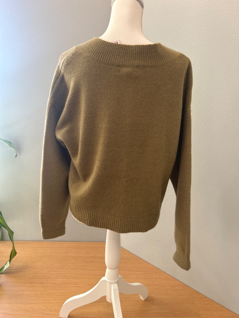 This Open Edit long-sleeve sweater in rich green offers understated sophistication through refined minimalist design. Sized at M, it features a flattering V-cut neckline that creates an elongating effect while the quality knit construction provides structure and durability. The jewel-tone green hue brings warmth and depth to your wardrobe, pairing beautifully with neutrals like cream, gray, and black, as well as complementary earth tones. The long sleeves provide practical coverage while the classic silhouette ensures timeless appeal across seasons. Layer it under blazers for polished professional styling or wear solo with denim for effortless casual elegance. The thoughtful construction and quality materials demonstrate that essential basics need not be boring—this sweater delivers quiet confidence and refined taste. An ideal foundation piece for building a cohesive wardrobe that prioritizes quality, versatility, and enduring style.