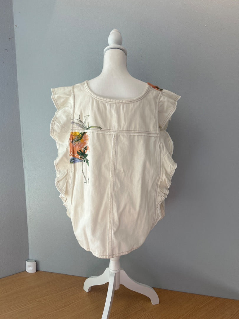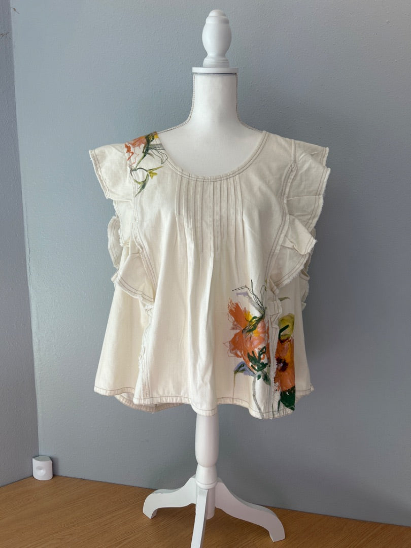 Pilcro 3X Tan Denim ruffle SS w/ florals