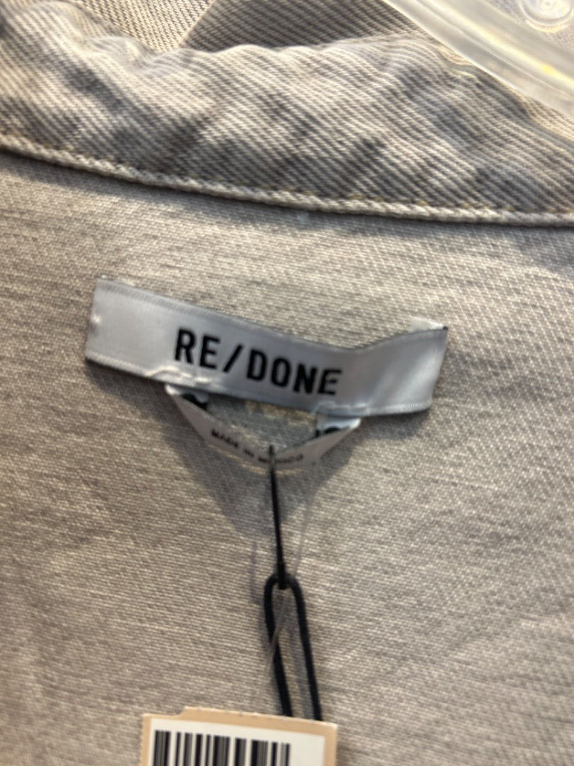Re/Done grey denim long sleeve button-up shirt in size small, featuring new-with-tags condition. This elevated denim piece showcases thoughtful construction and refined detailing characteristic of the Re/Done brand's commitment to quality basics. The versatile grey wash works across multiple seasons and styling scenarios, from layering under sweaters to wearing solo as a statement piece. The lo... read more