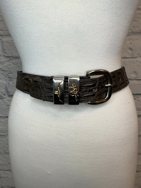 Crafted from premium crocodile leather, this R.M. Williams Drover belt exemplifies Australian heritage and timeless design. The XS sizing and like-new condition make this a rare find for collectors and discerning wearers. The rich brown patina develops character with wear, while the signature buckle delivers authentic Western-inspired style. A designer investment piece that transcends seasonal trends.