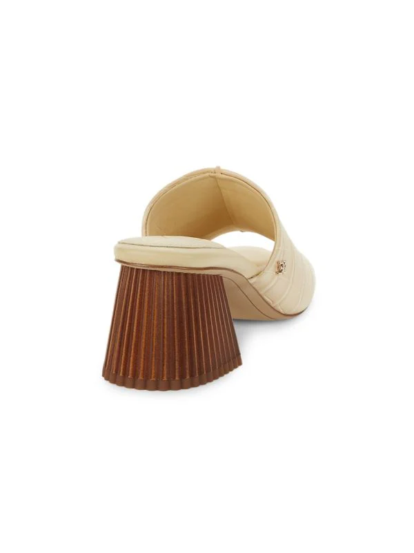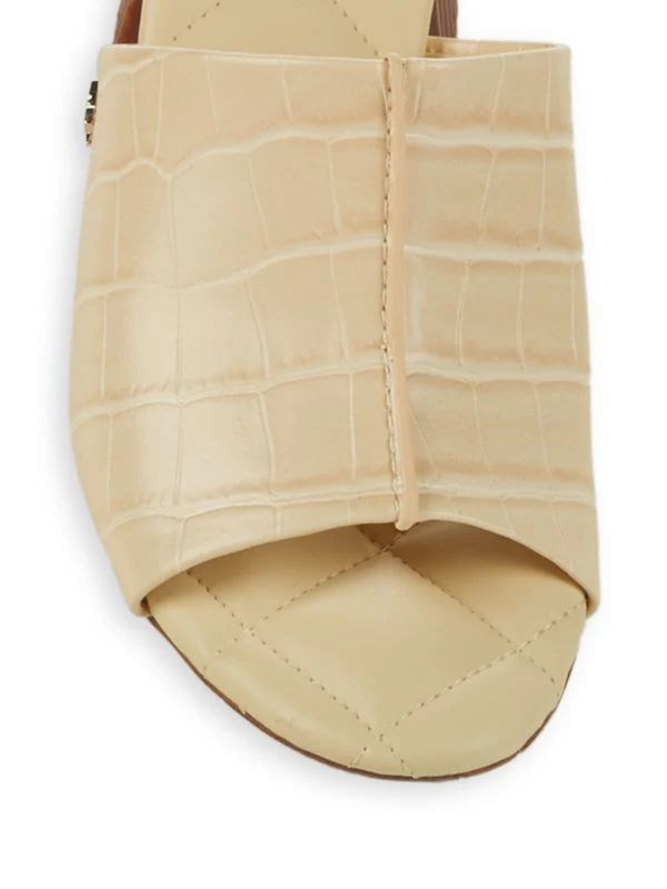 Brand new from Sam Edelman the "Sonya Croc-Embossed" sandals! These faux leather slide sandals are available in the color eggshell and are a luxurious textured faux leather pair of stacked heel sandals. Featuring an open toe design and a padded insole, these shoes are the epitome of style and comfort.