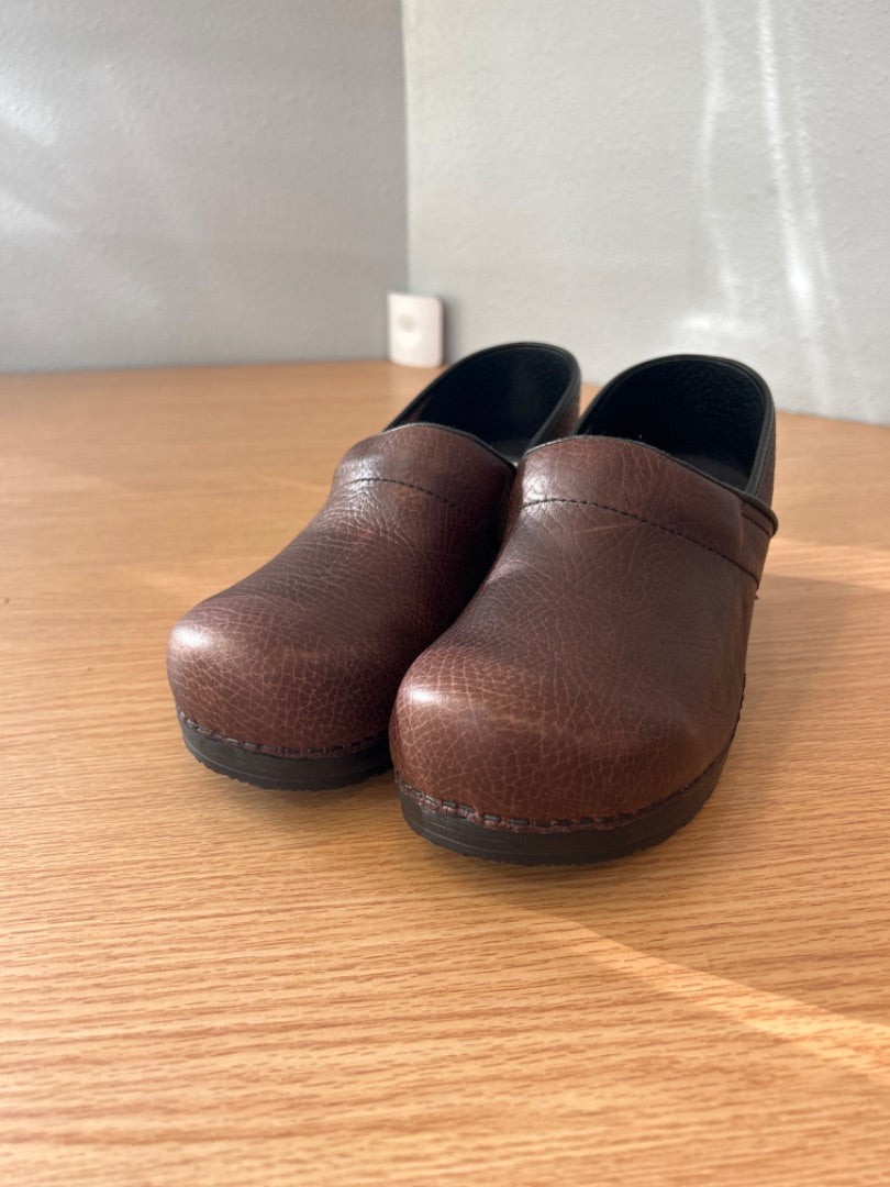 sanita 9.5 Brown Pebble leather danish clogs