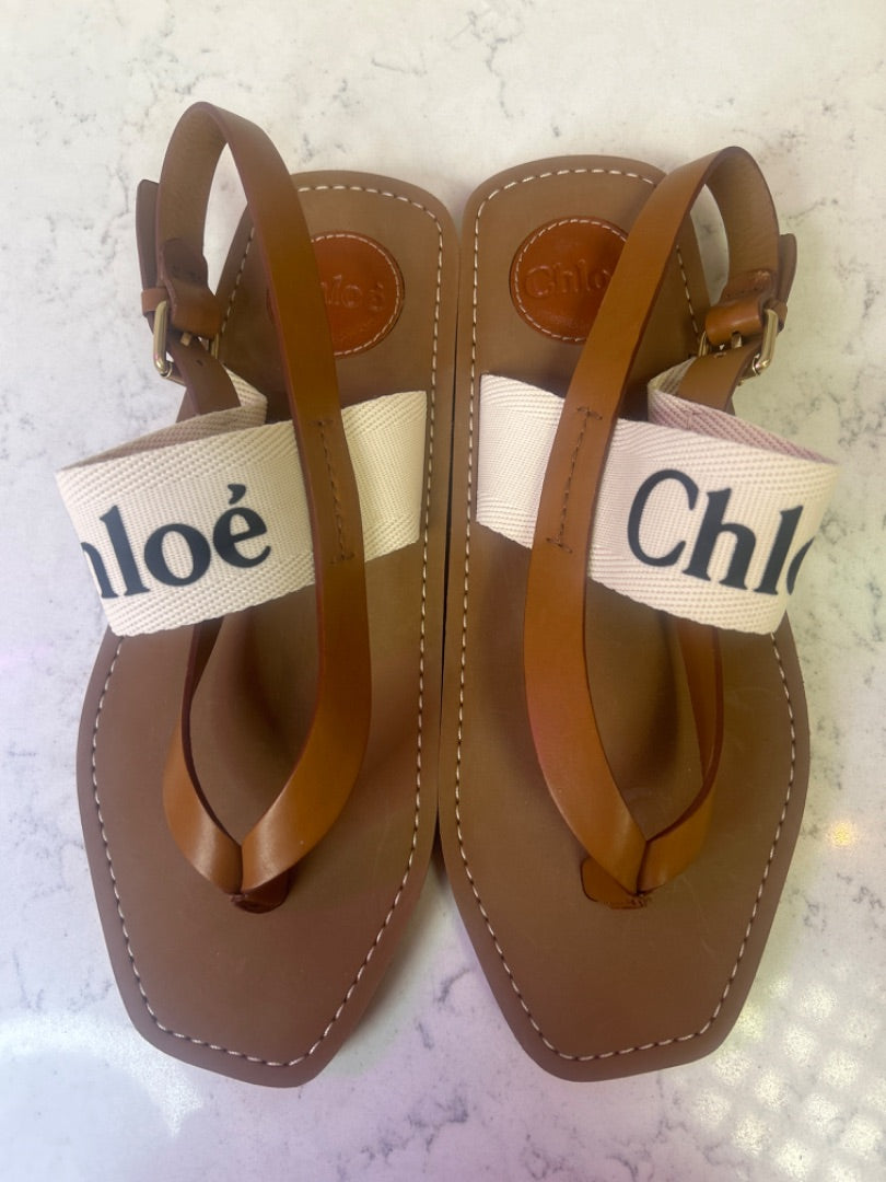See by Chloe 8.5 Tan Leather flip flop w/ back strap/branded strap