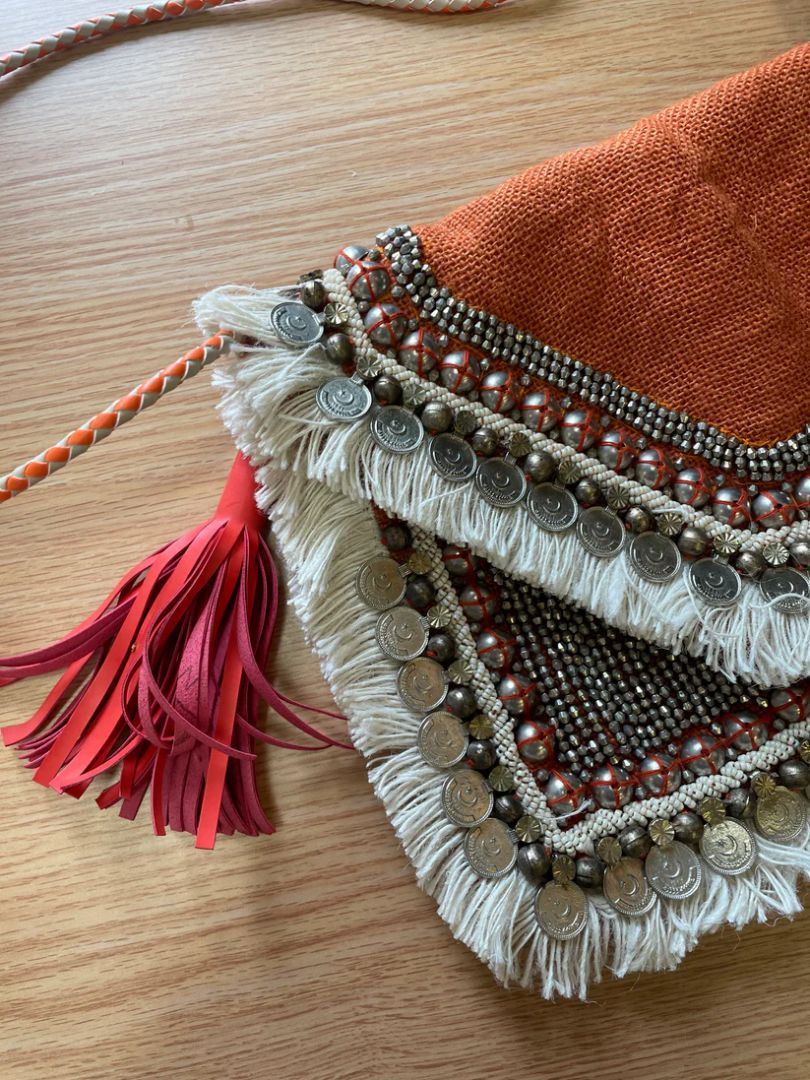 The beautiful beaded "Leela" clutch from SHASHI! Featuring a beaded canvas exterior and cotton fabric lining. Complete with a flap top and magnetic button closure, this clutch is the perfect accessory for any event or night out on the town.
