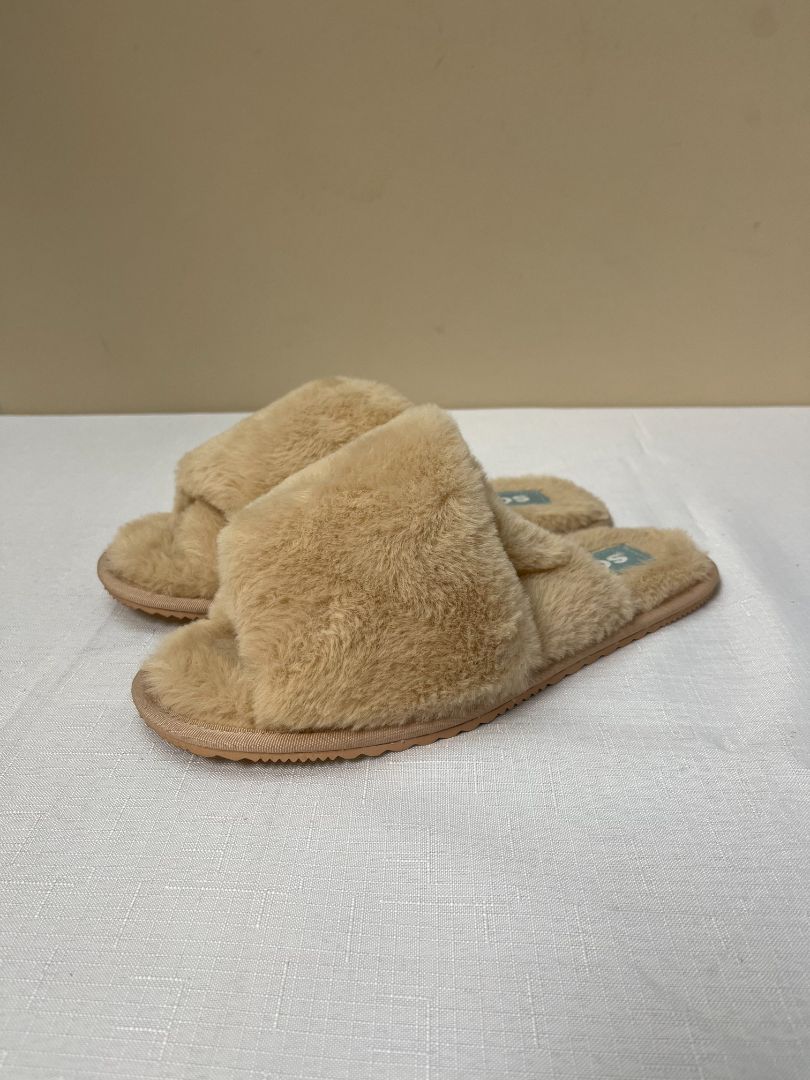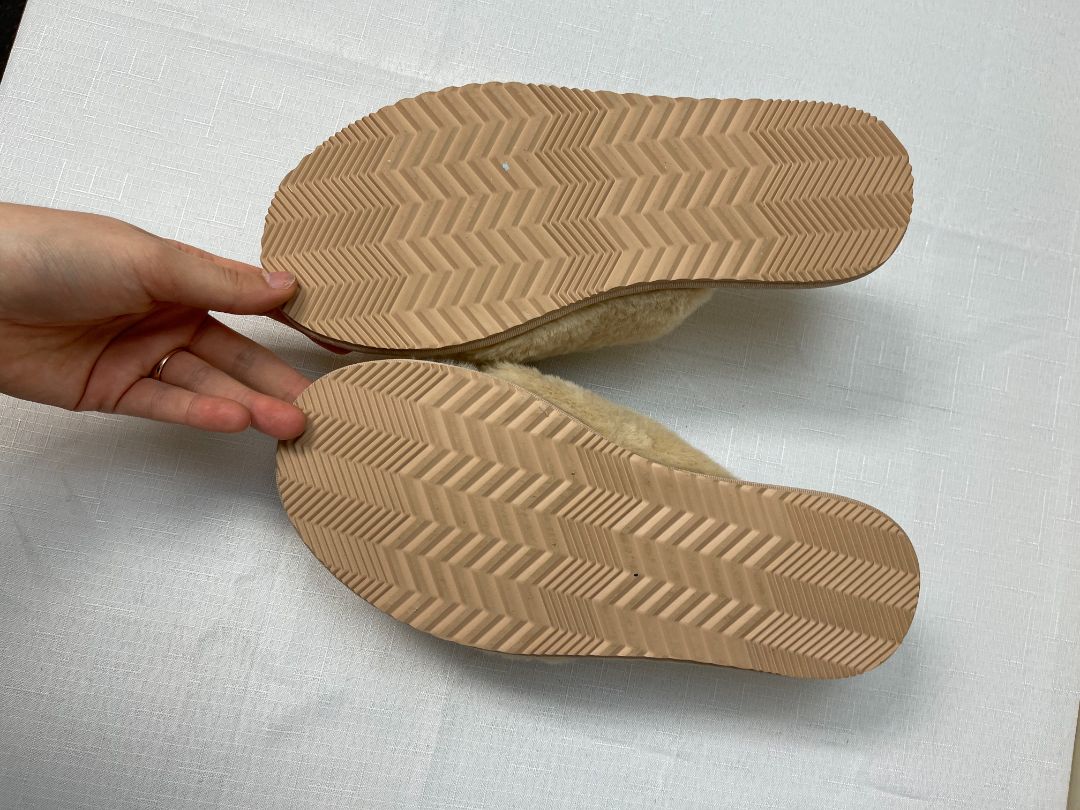 Slip into the plush comfort of these fuzzy "Go Mail Run" faux fur slid slippers grounded by a sturdy rubber sole that makes them perfect for quick errands.