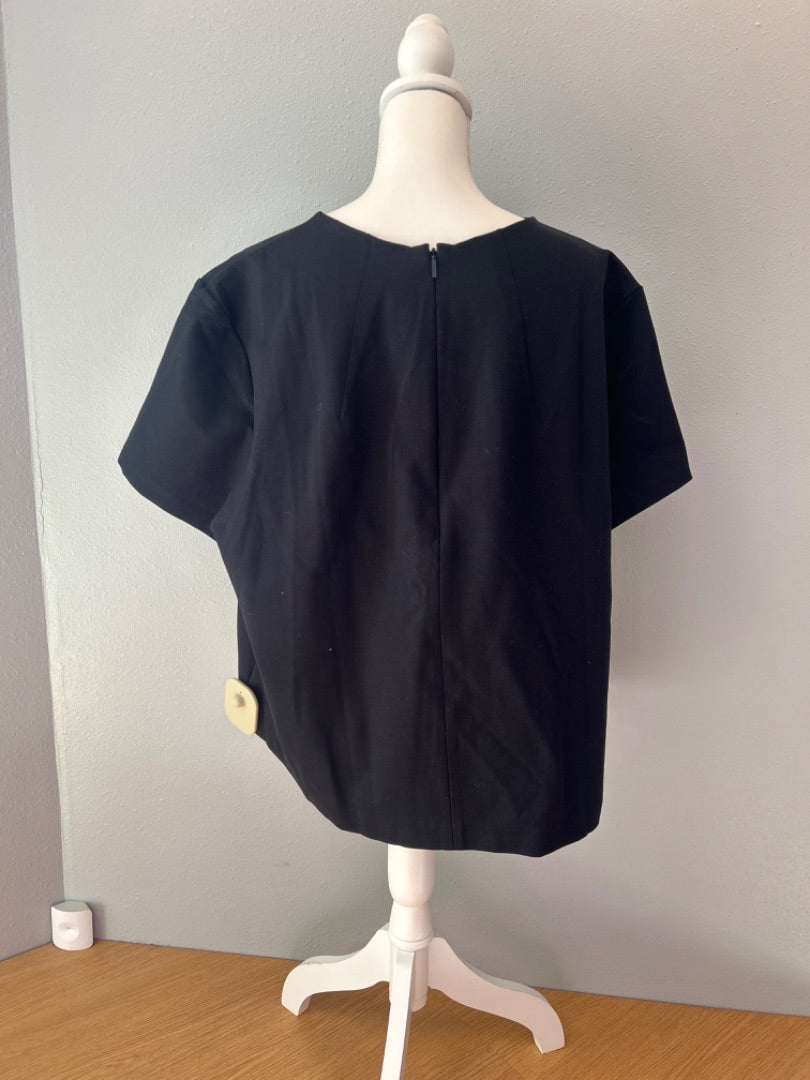 Spanx 3X Black SS tee w/ back zip/bust pleats NWT