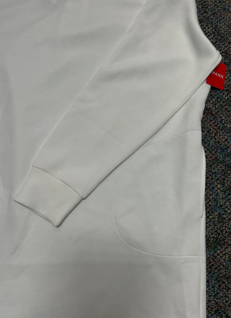 New with tags from Spanx, the "AirEssentials Crew Neck Dress" features lightweight fabric, 4-way stretch, and functional pockets. Available in the color white, this dress is the perfect combination of cozy and chic.