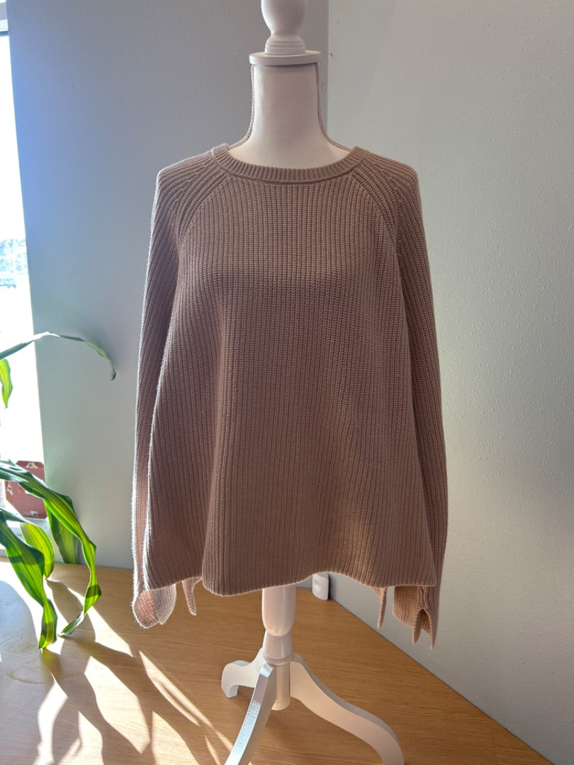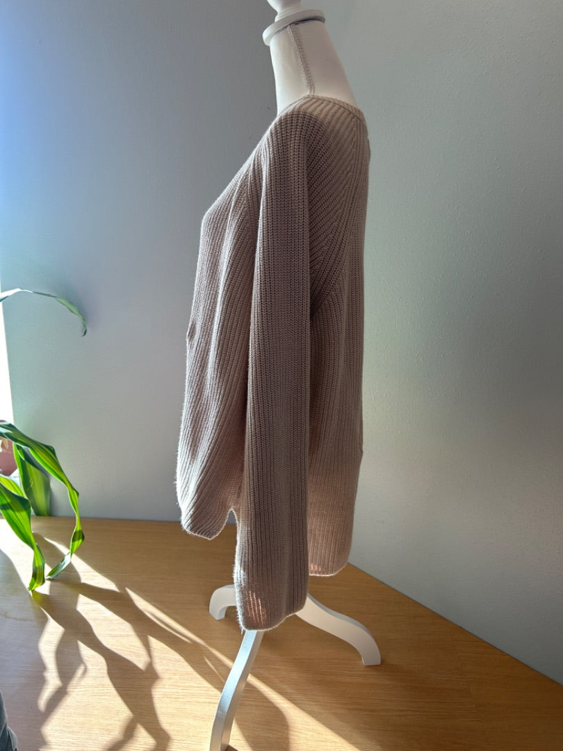 Stitches + Stripes L Tan Ribbed u-neck step hem