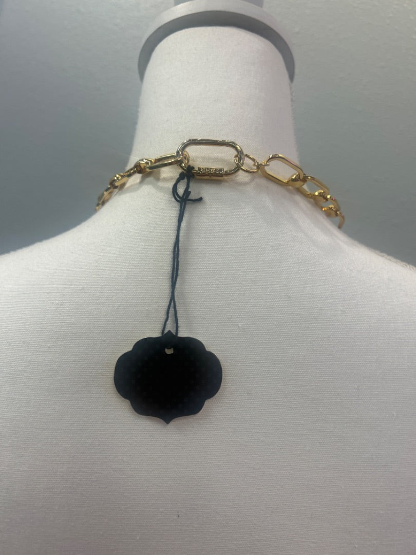 Trina Turk Gold open link chain w/gold cube & Pink stones, multiple tiny chains tassle Necklace Gold