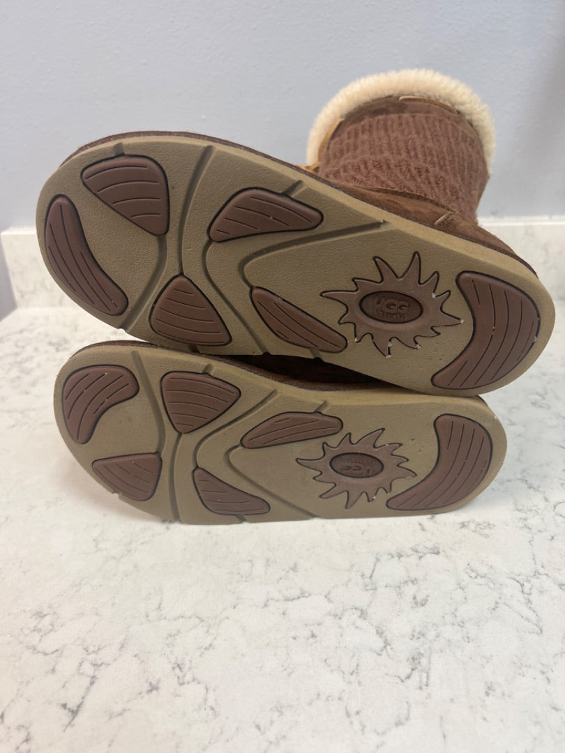 UGG 7 Brown Knit calf boots w/ ties/fur lining