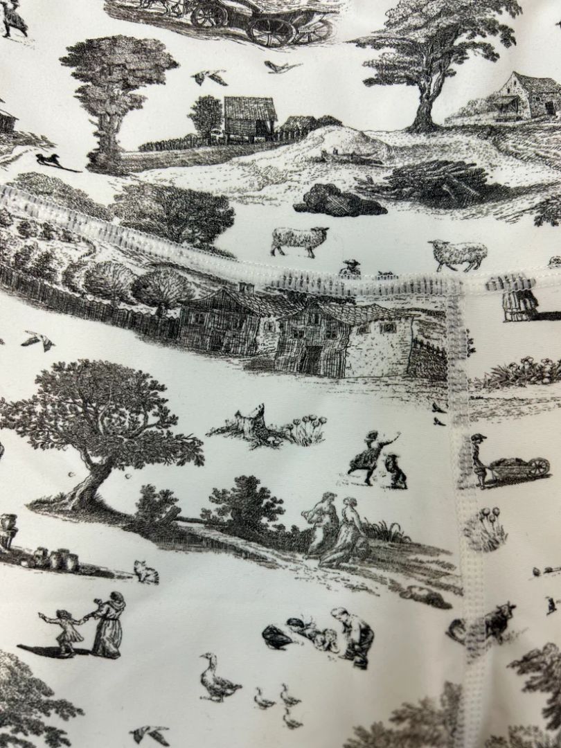 The "Vintage Toile Biker Shorts" from WeWoreWhat features a high-performance fabric and fit. New with tags, the timeless18th century inspired toile print on these shorts allows for a fashionable and unique look that's perfect for everyday!