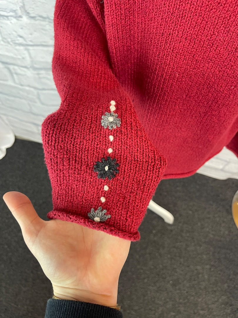 Woolrich's classic red cotton piece features intricate floral embroidery across the chest, back, and sleeves, creating a refined aesthetic with timeless appeal. The crew neckline with collar adds structure and versatility, making it equally suited for layering or standalone wear. Crafted from quality cotton with wool embroidery detailing, this piece combines comfort with sophisticated craftsman... read more
